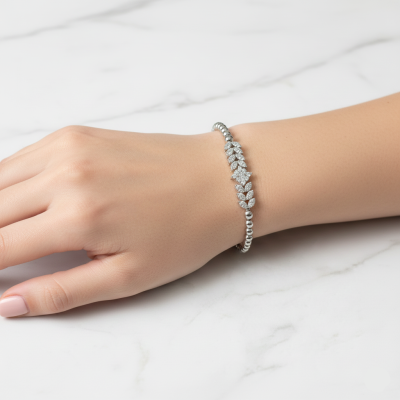 Silver Pastel Green Stone Indrani Adjustable AD Chain Bracelet
