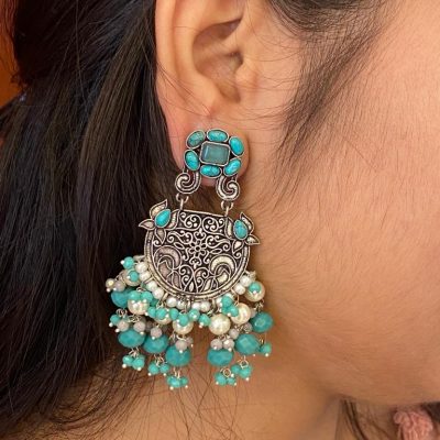 Sea Green Vidhi German Silver Earring