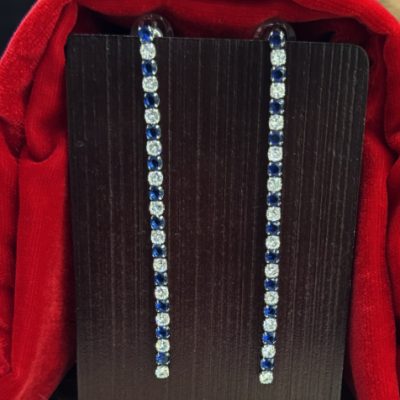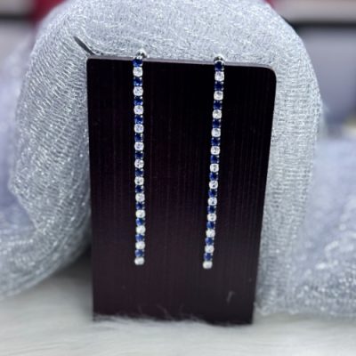 Silver Blue Long AD Earring