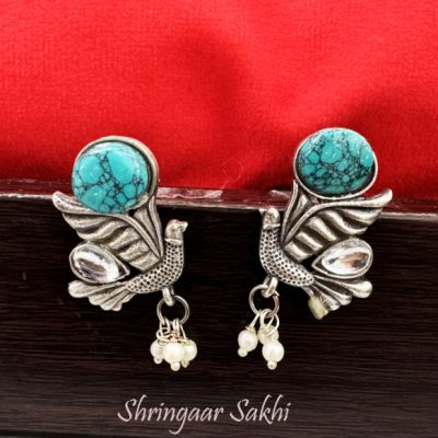 Turquoise Stone Ishika Oxidised Earring