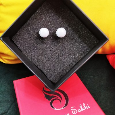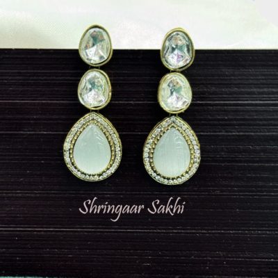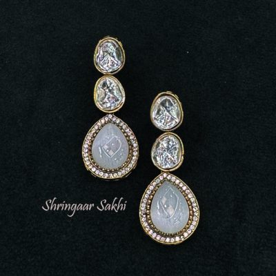 White Stone Roshan Brass Earring