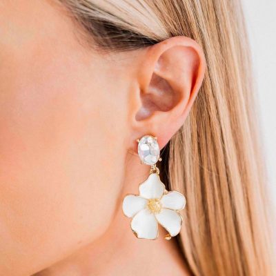 White Flower Silver Crystal Stone Earring