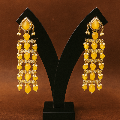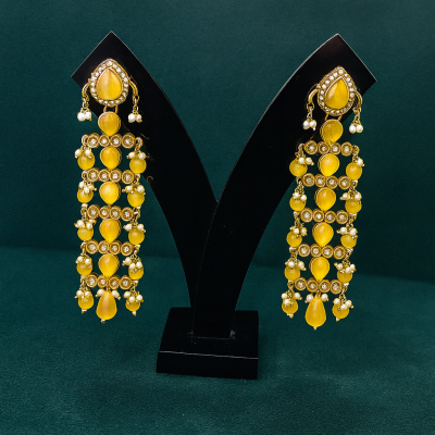 Yellow Kundan Cascade Long Earrings