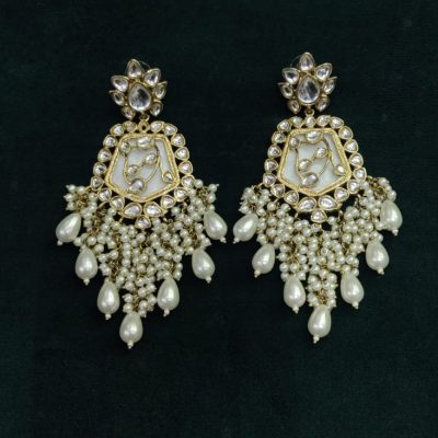 White Pearl Kundan Jhumar Earrings