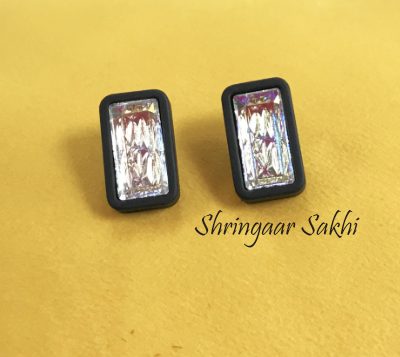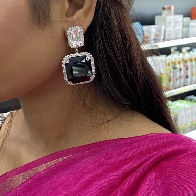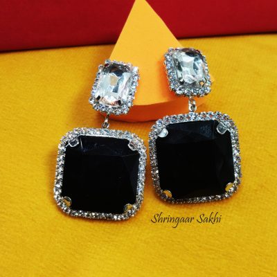 Black Silver Cube Stud Earring
