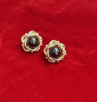 Black Pearl Golden Stud Earring