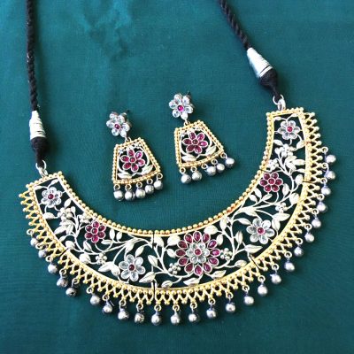 Ruby White Brass Hasli Necklace Set