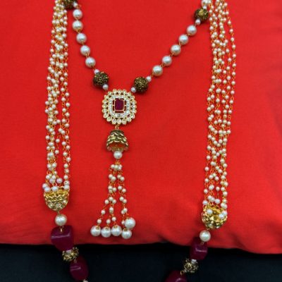 Bhavini Pearl Layered Mala with Ruby Stone