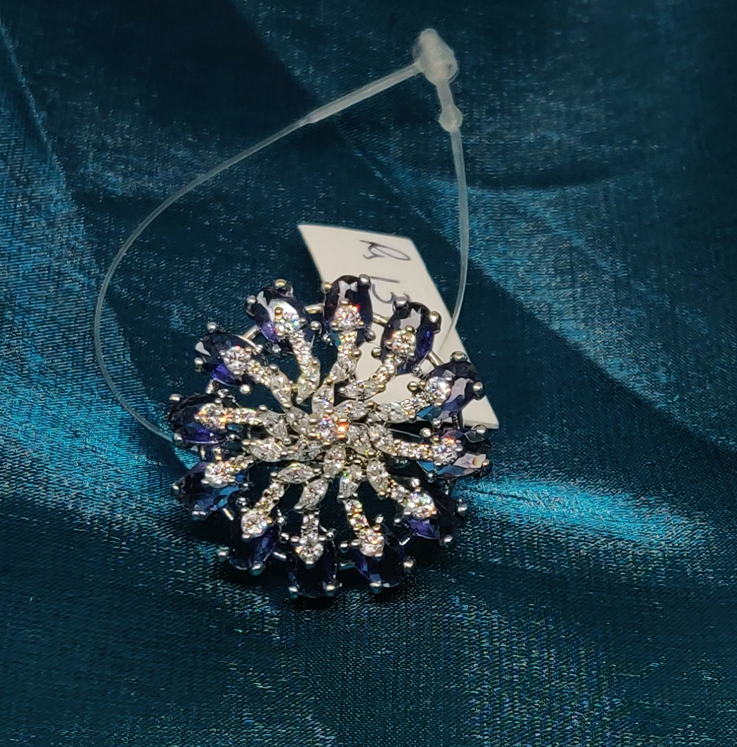 Elevate your elegance with this stunning floral-inspired finger ring. Designed with a radiant burst of sparkling clear stones arranged like petals and accented with deep blue teardrop crystals, this ring captures the perfect balance of glamour and sophistication. Its silver-toned base enhances the brilliance of the stones, giving it a dazzling finish that commands attention. The flower-like motif and intricate craftsmanship make it an eye-catching piece for both modern and traditional wardrobes.
