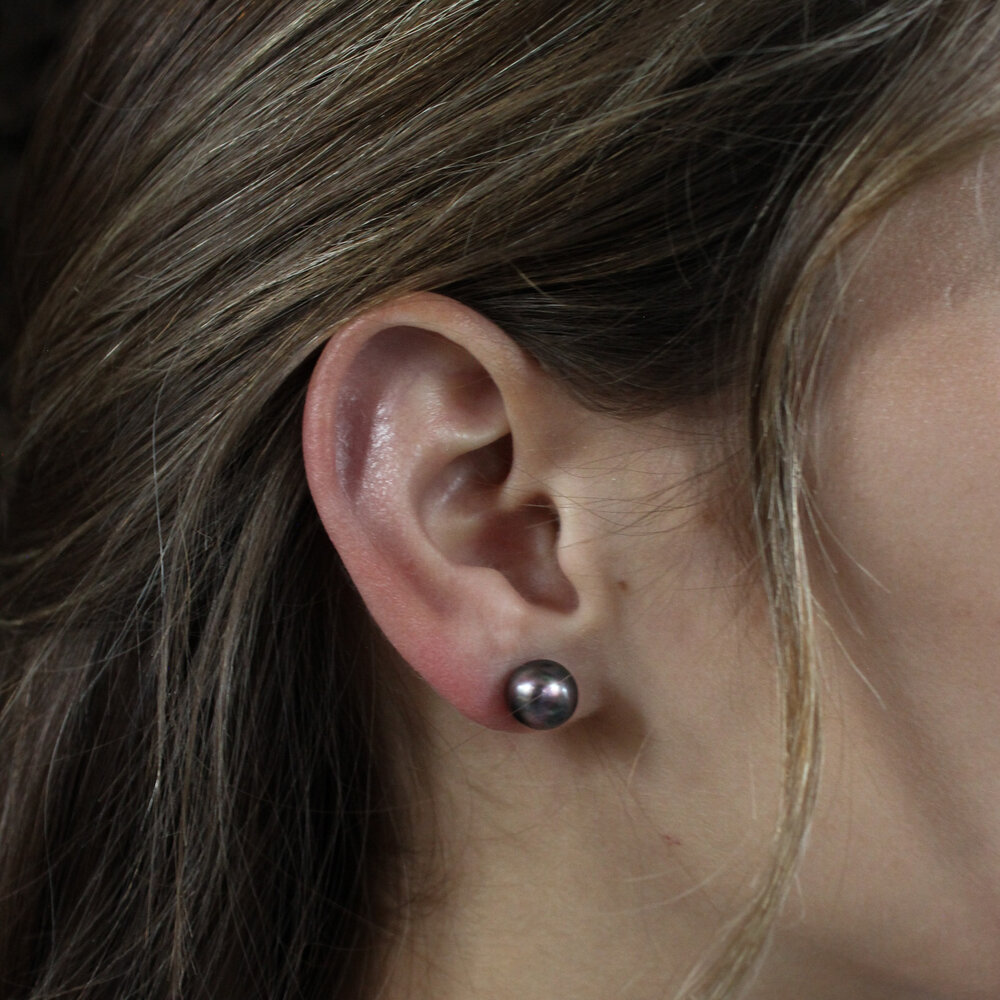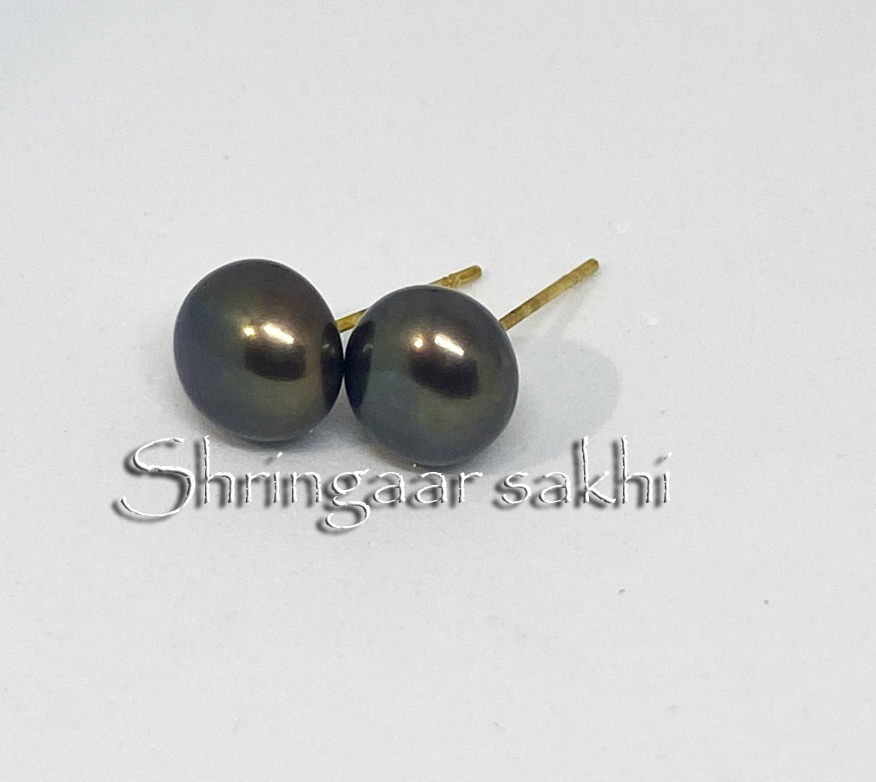 These classic black color pearl stud earrings feature a simple and elegant design. The timeless appeal of the pearls makes them a versatile accessory, perfect for both everyday wear and special occasions.