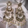 Style these earrings with a monochrome or lightly embellished outfit to let the intricate details of the earrings shine. Pair with an elegant black or silver sari, lehenga, or an Indo-western gown for special occasions. Keep other accessories minimal and opt for soft, neutral makeup tones to let these earrings remain the focal point of your look.