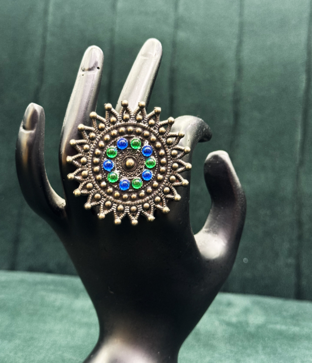 Blue Green Nandini Oxidised Ring