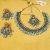 Pair the combo set with an outfit in a rich and contrasting color like royal blue. The cyan stone work will create a striking contrast, enhancing the overall allure.