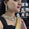 This Kundan necklace set is a beautiful and versatile piece of jewelry that can be paired with a wide range of colors and outfits, so don’t be afraid to experiment and find what works best for your personal style and the occasion. A black outfit would create a striking contrast with the green emerald necklace set. A black cocktail dress or black jumpsuit would be a great choice for a formal event.A white outfit would make the emerald necklace set stand out. A white blouse and pants or a white dress would be perfect. A gold dress or a gold blouse and skirt would work well for a any event.Navy blue is a complementary color to emerald green and would create a harmonious look with the necklace set. A navy blazer paired with dress pants or a navy dress would be perfect for a business or formal event.Peach is a soft and feminine color that would complement the emerald green. Silver is another color that complements emerald green.