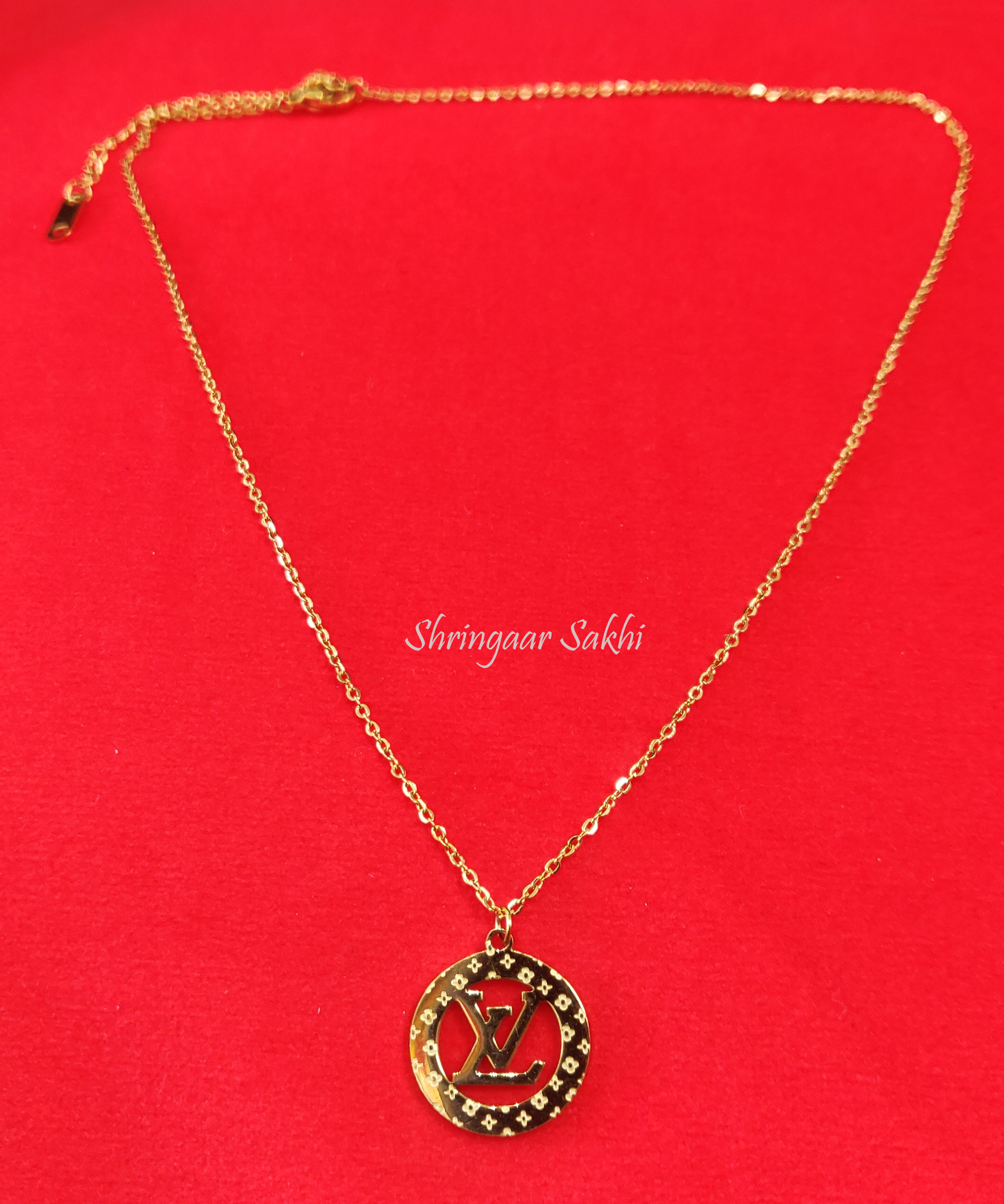 Elevate your style with understated luxury. Our simple golden chain features a timeless LV pendant, a symbol of iconic elegance. The delicate chain seamlessly blends with any ensemble, adding a touch of sophistication to your everyday look.