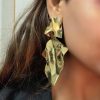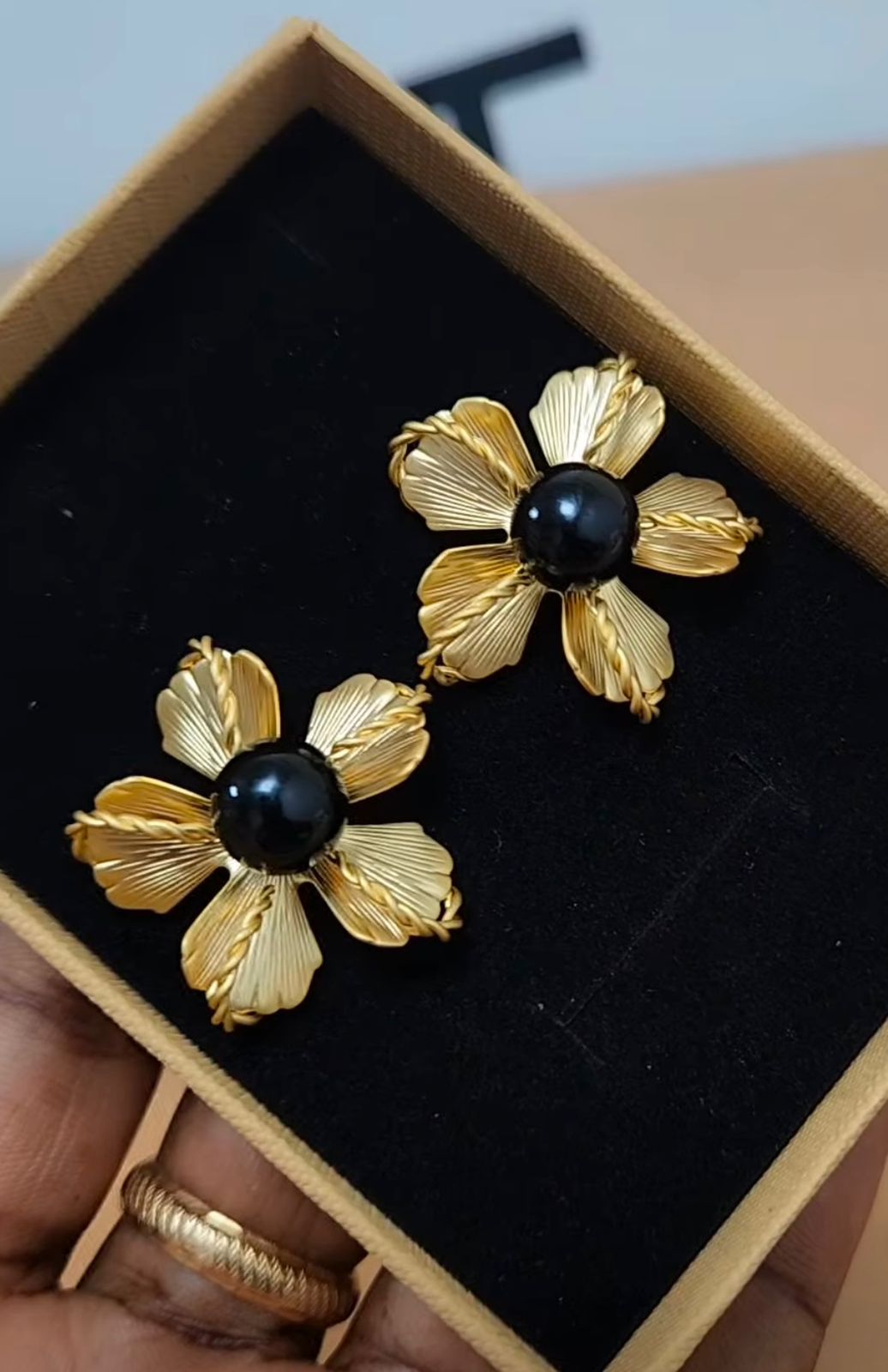 To style these floral beauties, wear them with off-shoulder or boat-neck tops to accentuate their bold, botanical silhouette. They’re perfect for both daytime soirees and evening affairs—pair them with a sleek black dress for a dramatic contrast, or match them with jewel-toned outfits to complement the richness of the gold. Keep other accessories minimal to let the earrings shine, and opt for a soft updo or sleek hair to highlight their intricate petal design.