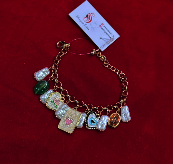 Perfect for fashion-forward individuals, this bracelet can be styled with contemporary outfits like monochrome dresses or neutral-toned co-ords to let the charms stand out. For a more bohemian look, layer it with other beaded or chain bracelets. Ideal for casual hangouts or creative events, it brings a pop of personality to any ensemble.
