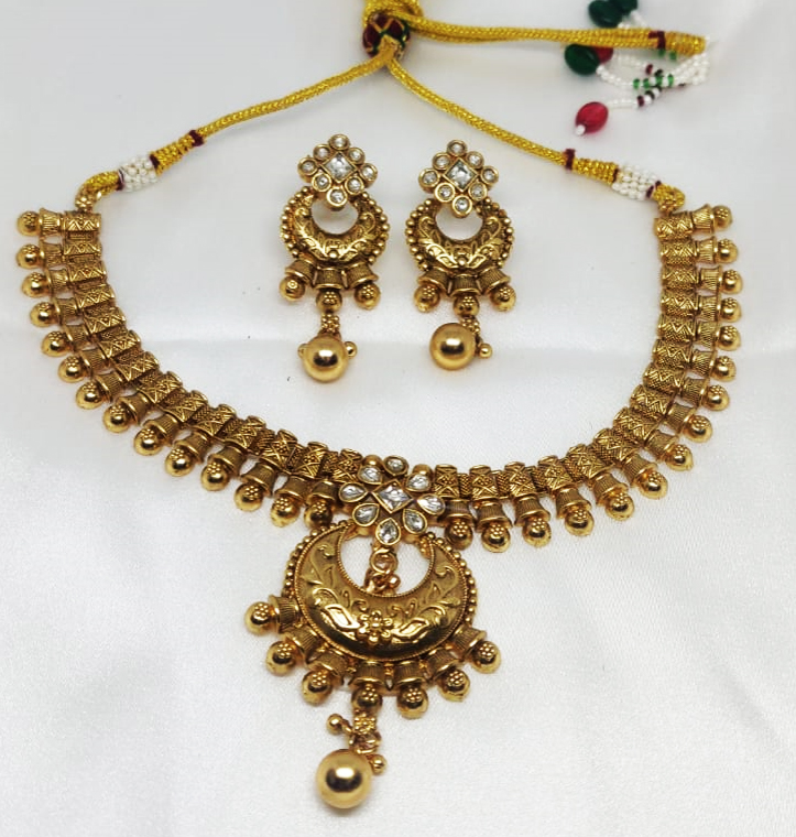 Golden Matte Finish Round Pendant Choker Set