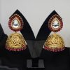 To style these earrings, pair them with lehengas, shararas, or heavy anarkalis—especially those with intricate zardozi or gota patti work. Ideal for sangeet, mehndi, or wedding day looks, these earrings should be worn with hair tied back in a low bun or braided style to highlight the draping side chains. Avoid heavy neckpieces; instead, go for a maang tikka or matha patti to complement the grandeur. Opt for dewy makeup with defined eyes and a rich lip color to balance the richness of the earrings.