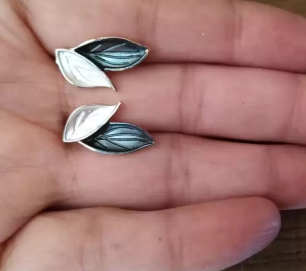 Delicate yet artistic, these dual-tone leaf earrings feature a graceful blend of pearl white and smoky grey enamel encased in a fine golden outline. Inspired by nature’s elegance, the layered leaf design gives them a soft, flowing appearance while maintaining a sophisticated modern edge. Lightweight and versatile, these earrings are perfect for both everyday wear and subtle statement looks.