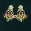 Pair these earrings with ivory, gold, pastel, or champagne outfits for a flawless, regal look. A sleek bun or half-tied hairdo beautifully highlights the circular detailing and pearl fringe. Go for soft-glam makeup with a shimmery highlight to complement the kundan shine. These earrings also look stunning with sarees, Anarkalis, and reception gowns.