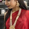 Ideal for festive occasions or wedding functions, this set pairs beautifully with deep-toned outfits like maroon, emerald, or navy. The antique silver and American Diamond accents provide a refined touch, making it perfect for both traditional and fusion looks. Keep makeup subtle and let this statement piece do the talking.