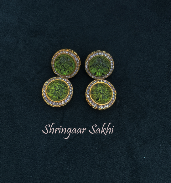 Parrot Green Carving Stone Richa Earring