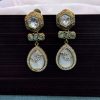 Pair these earrings with traditional outfits like a green or gold saree or lehenga to enhance their regal appeal. For a more contemporary look, they can be styled with a chic black dress or an evening gown. Keep your accessories minimal to allow these statement earrings to stand out, and opt for an elegant updo or swept-back hairstyle to showcase their intricate design.