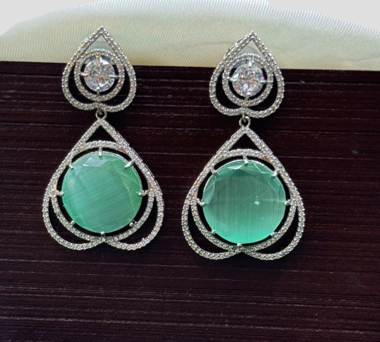 Pastel Green Silver Nisha AD Earring