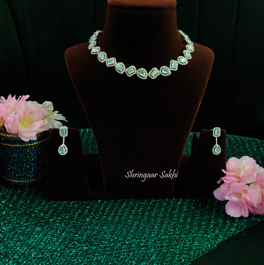 Pastel Green Valeria American Diamond Necklace Set