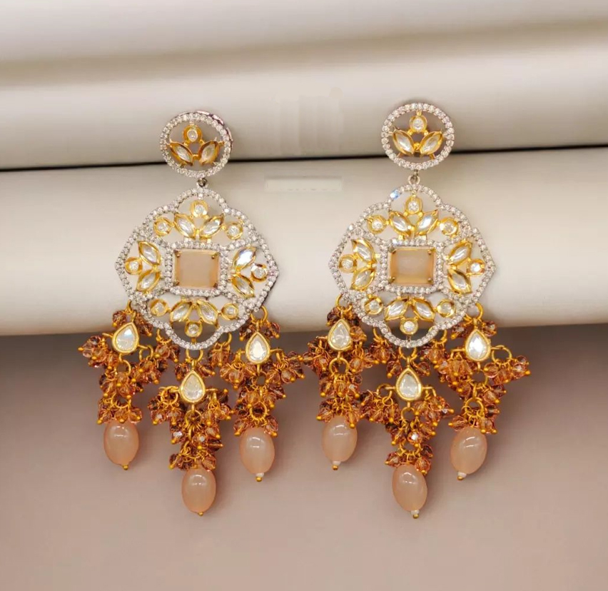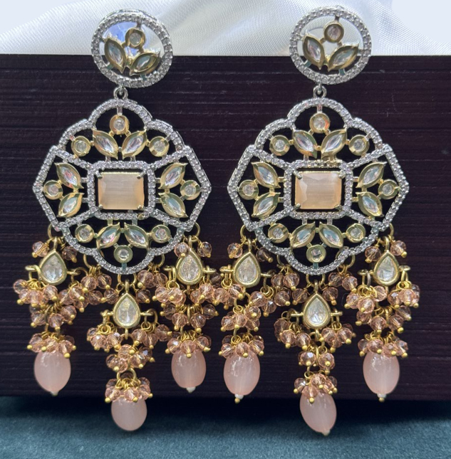 Peach Silver Rajamani Kundan AD Earring