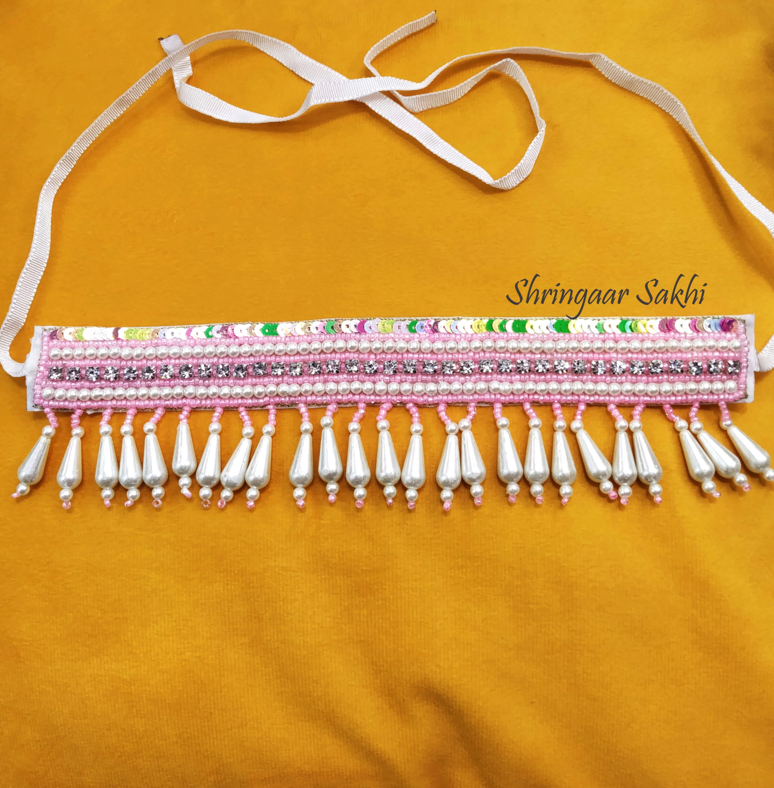 This jewellery set consists of a necklace and a pair of earrings, this handcrafted necklace has Pink and White toned beaded intricate details secured with a tie-up closure.