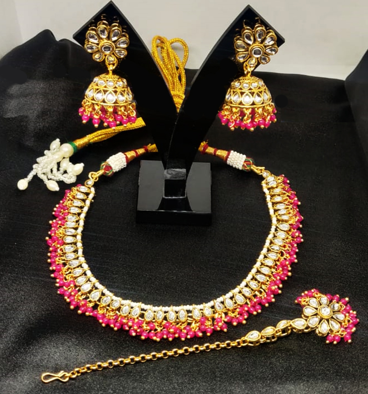 Rani Pink Golden Kundan Choker Set