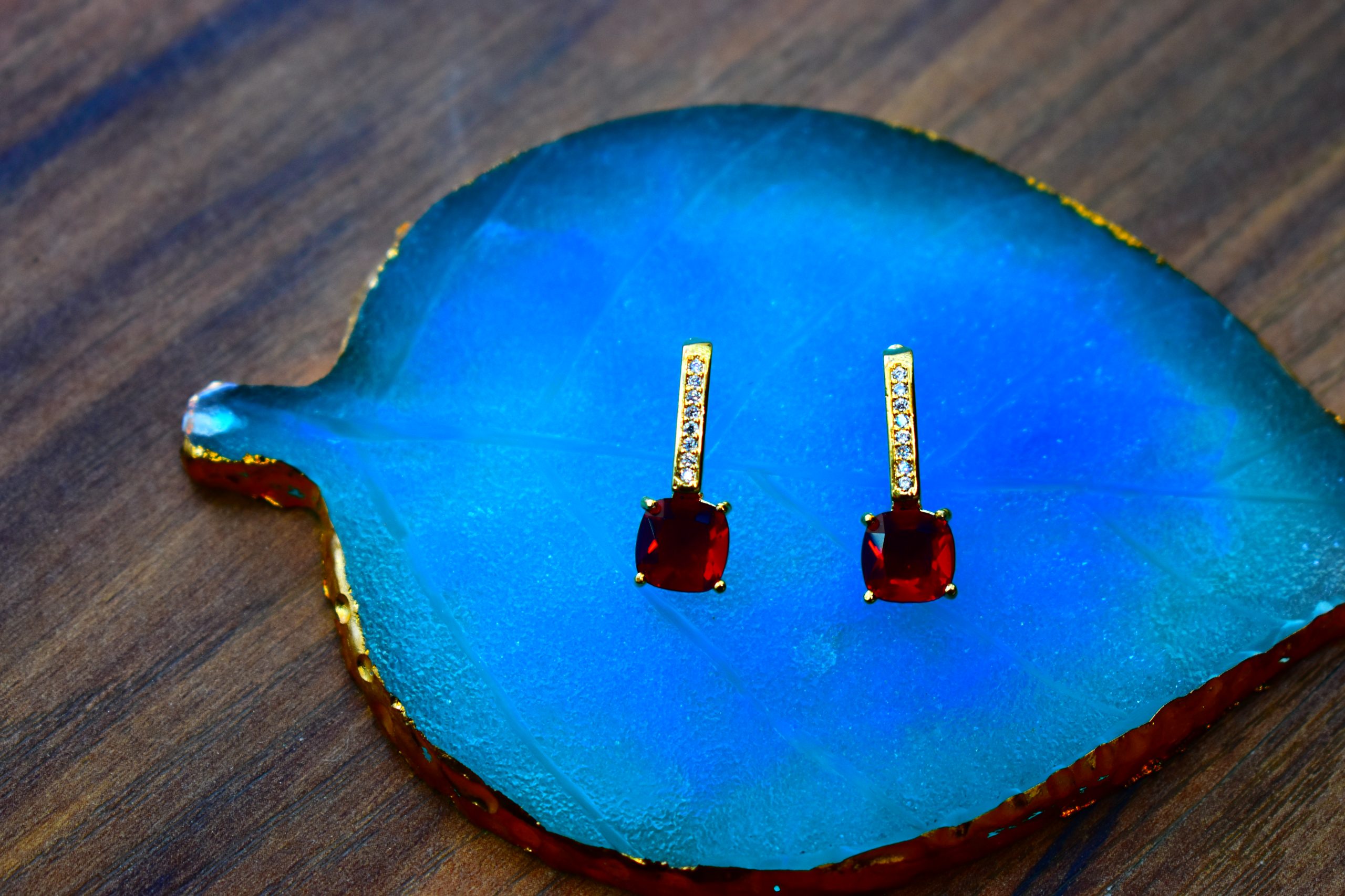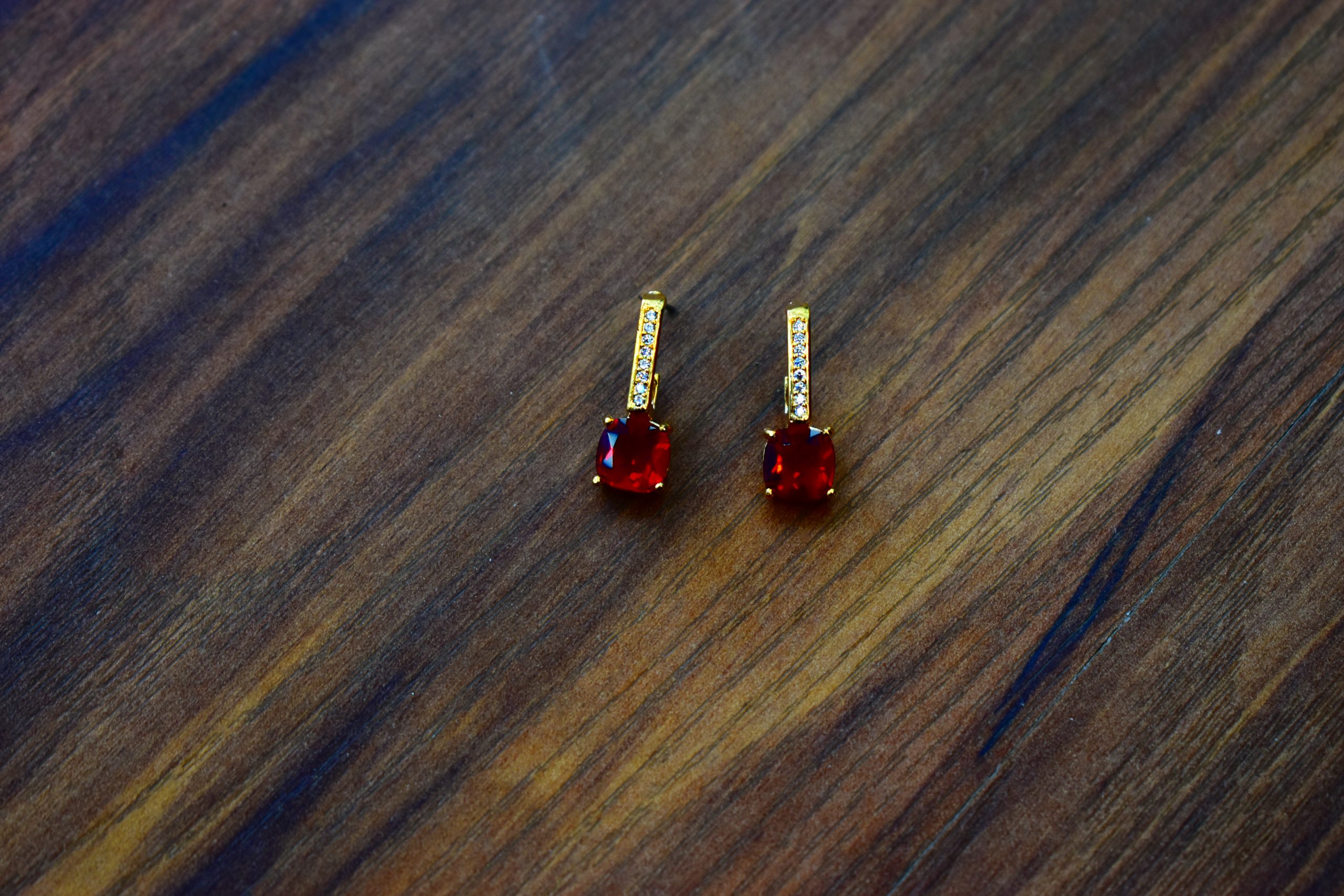 Add a pop of color and timeless charm to your look with these elegant red crystal earrings. Featuring a sleek, minimalistic drop design, each earring is set with a radiant square-cut ruby-toned stone that exudes sophistication. The gold-toned finish adds a touch of luxury, making them perfect for both everyday elegance and special occasions.