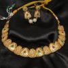 This necklace is perfect for festive occasions, pujas, or traditional gatherings. Pair it with a silk saree or a vibrant lehenga in shades of magenta, green, or gold to accentuate the enamel detailing. Opt for a simple bun or half-up hairstyle to draw attention to the neckline and earrings. Keep your makeup fresh and traditional with kohl-rimmed eyes and a bindi to enhance the ethnic charm of this beautiful piece.