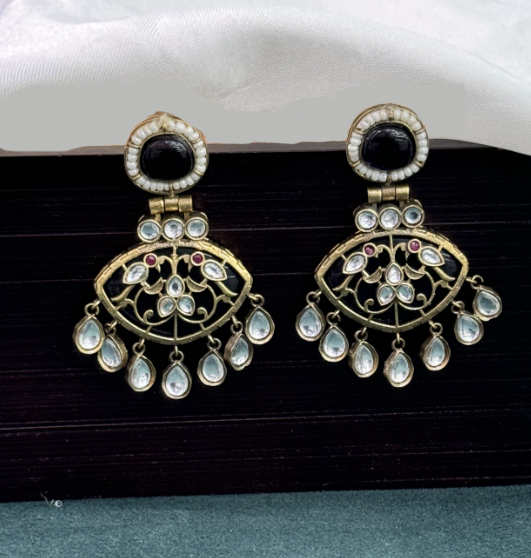 Pair these earrings with traditional attire, such as a silk saree or embroidered lehenga, to elevate the grandeur of your look. Opt for bold colors like deep reds, blacks, or golds to complement the earrings’ opulent design. Keep other accessories minimal to allow these statement pieces to shine, and consider an elegant updo or braided hairstyle to showcase their intricate detailing.
