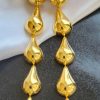 Pair these earrings with a sleek evening gown, a satin saree, or a minimal blouse and lehenga set in neutral or jewel tones like champagne, black, emerald, or navy. Keep your neckline clean or opt for a delicate chain to let the earrings take center stage. A sleek bun or side-swept waves will highlight their shine, and a touch of shimmer in your eye makeup with a nude or mauve lip will tie the look together. Since the earrings make a statement on their own, skip heavy accessories and carry a chic clutch to complete your elegant