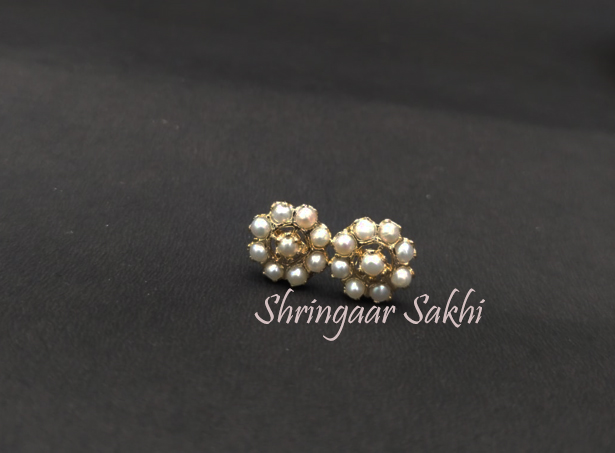 These elegant earrings feature a floral-inspired design with delicate pearls arranged in a gold-toned frame. The clustered pearls form a classic and timeless look, making these earrings perfect for both traditional and modern outfits.