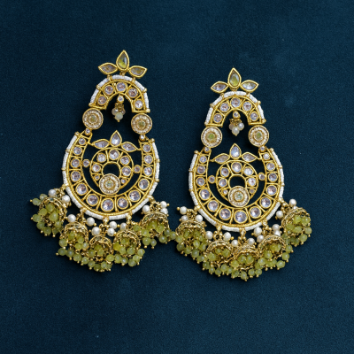 Pearl Drop Olive Kundan Chandbalis